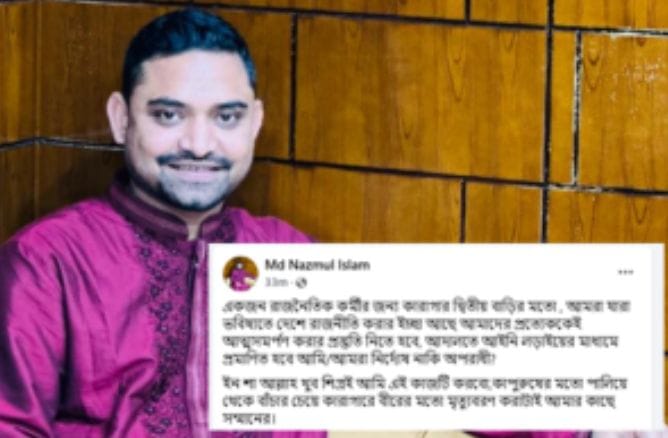 আত্মসমর্পণ করতে পারেন সিলেট জেলা ছাত্রলীগের সভাপতি নাজমুল ইসলাম। বুধবার দিবাগত রাত ১টার দিকে তার ফেসবুক পেইজে দেয়া একটি পোস্ট থেকে এর ইঙ্গিত পাওয়া গেছে। ওই পোস্টে তিনি লিখেছেন, ‍"একজন…