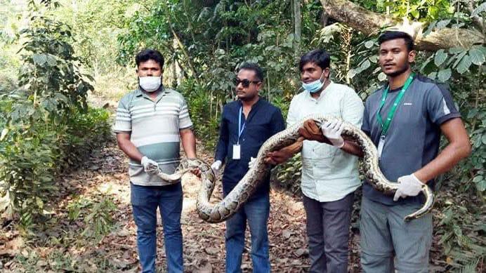 মৌলভীবাজারের শ্রীমঙ্গল উপজেলার জাগছড়া চা বাগান থেকে সাড়ে ১৫ ফুট লম্বা ও ২০ কেজি ওজনের একটি অজগর সাপ উদ্ধার করেছে বন বিভাগ। রেসকিউ সেন্টারে ১১ দিন পর্যবেক্ষণে রাখার পর শেষে…