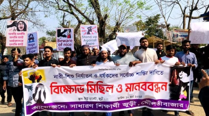 তারা বলেন, ধর্ষকের শাস্তি মানেই মৃত্যু। আমরা অবিলম্বে ধর্ষকের শাস্তি নিশ্চিত করার দাবি জানাচ্ছি। একেকটি শিশুর ধর্ষণের ঘটনা আমাদের সমাজের জন্য চরম লজ্জাজনক! বাংলাদেশের বিচারহীনতার সংস্কৃতির কারণে ধর্ষণকারীরা বার বার পার পেয়ে যাচ্ছে।
