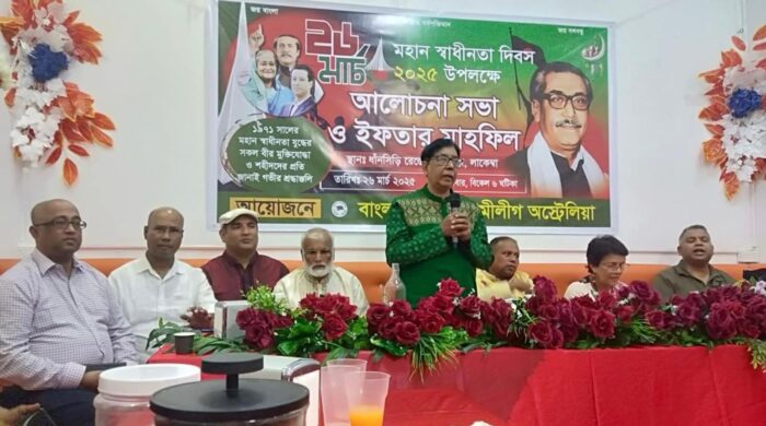 অস্ট্রেলিয়ার সিডনিতে ২৬ মার্চ ২০২৫ লাকেম্বার ধাঁণসিড়ি রেস্তোরার হলরুমে বাংলাদেশ আওয়ামীলীগ অস্ট্রেলিয়ার উদ্যোগে বিশিষ্ট শিক্ষাবিদ, লেখক ও কলামিষ্ট ড. কাইউম পারভেজের সভাপতিত্বে ও মাকসুদুর রহমান সুমন চৌধুরীর সঞ্চালনায় মহান স্বাধীনতা দিবসের আলোচনা সভা ও ইফতার মাহফিলের বিশেষ আয়োজন করা হয়।