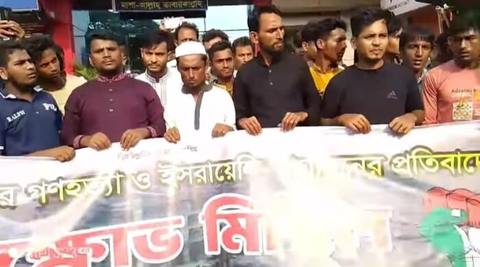 বাঁশখালীতে ইসরায়েলি বর্বরতার বিরুদ্ধে যুবদলের মানববন্ধন