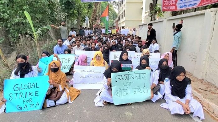 গাজায় হামলার প্রতিবাদে দৌলতখানে ছাত্রদলের অবস্থান কর্মসূচি