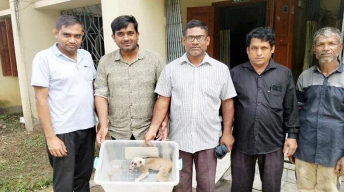 বন্যপ্রাণী প্রকৃতি সংরক্ষণ বিভাগের শ্রীমঙ্গল রেঞ্জ কর্মকর্তা মো. কাজী নাজমুল হক জানান, প্রাণীটিকে উদ্ধার করে লাউয়াছড়া রেসকিউ সেন্টারে রাখা হয়েছে। প্রাণীটি অসুস্থ, সুস্থ করে তুলে অবমুক্ত করা হবে লাউয়াছড়ার বনে।